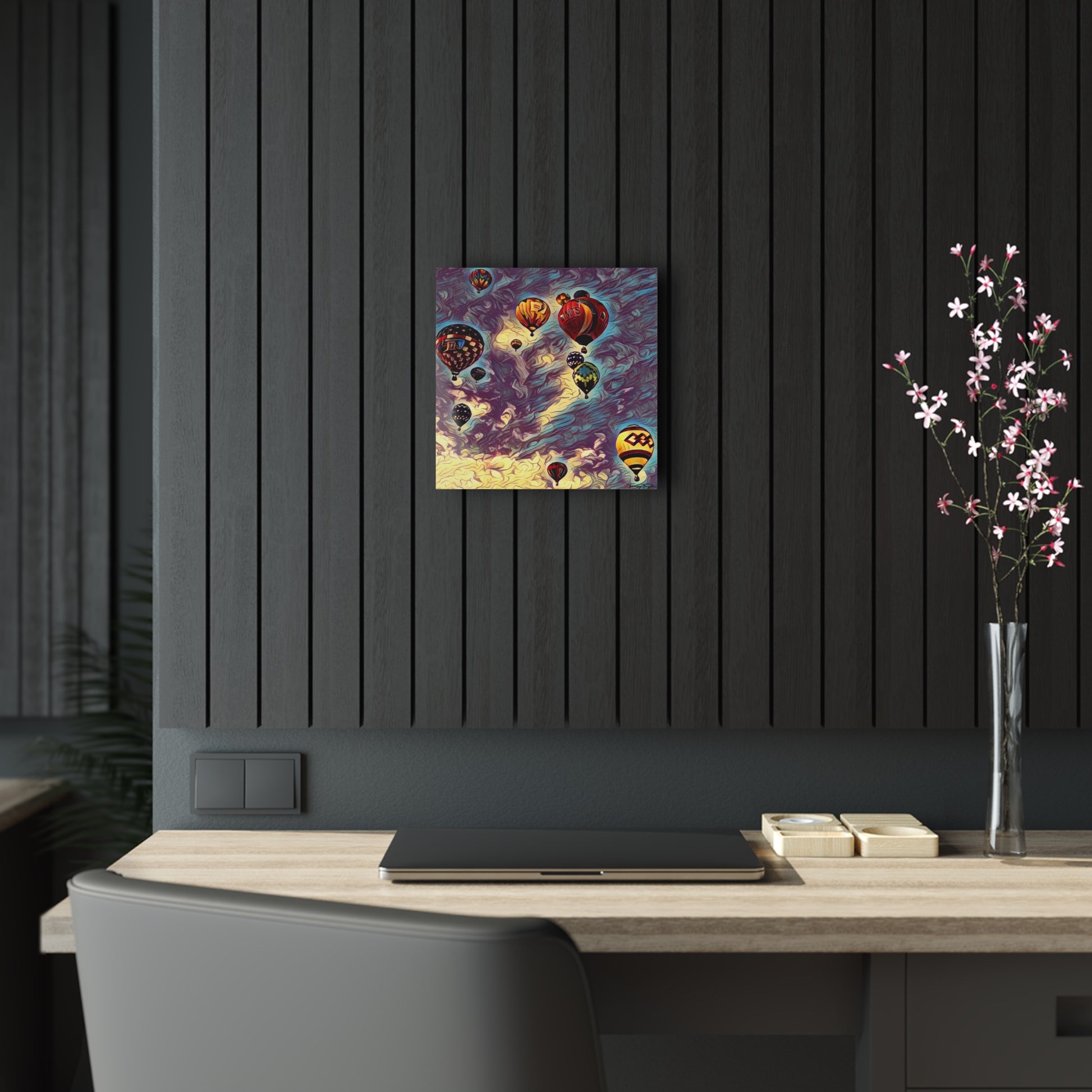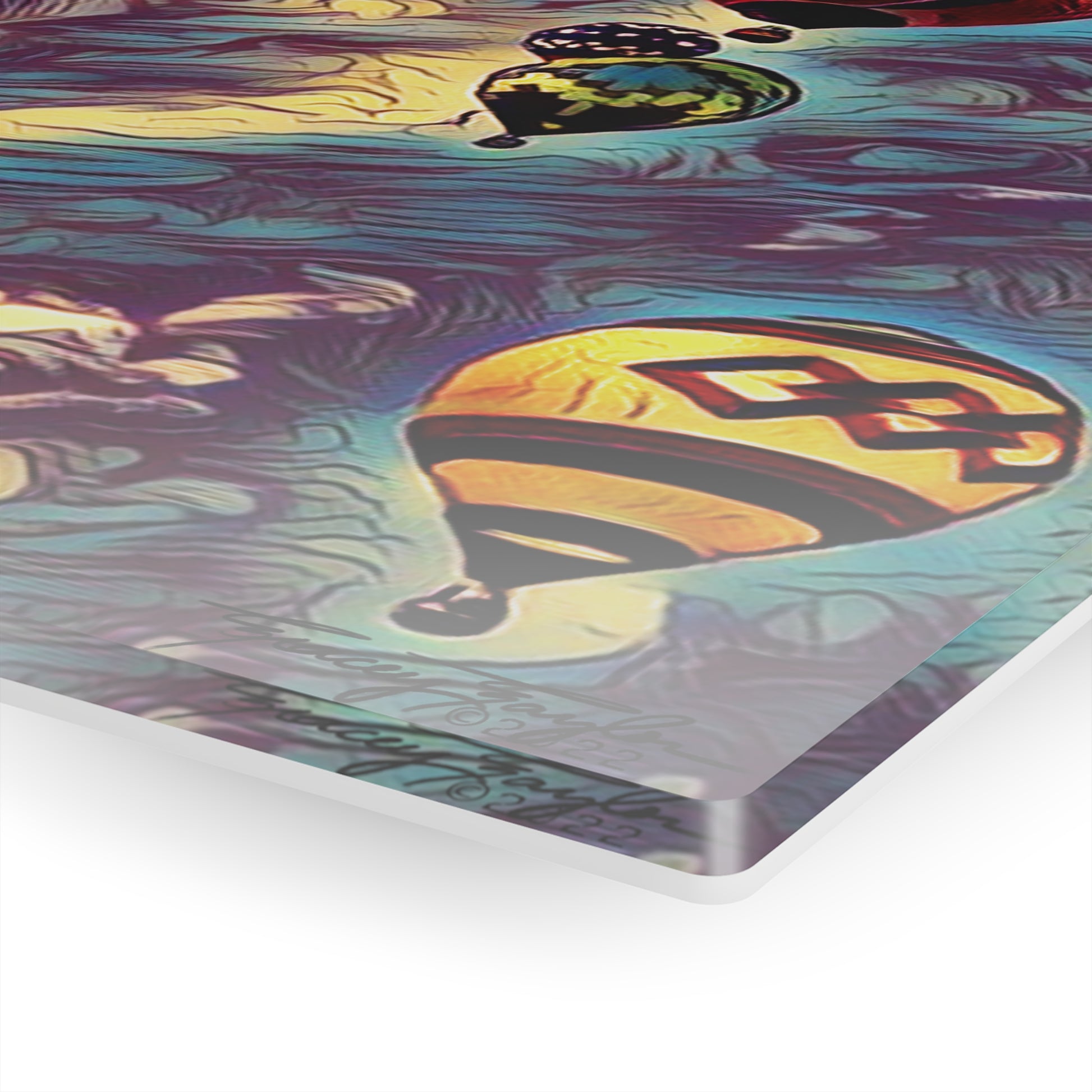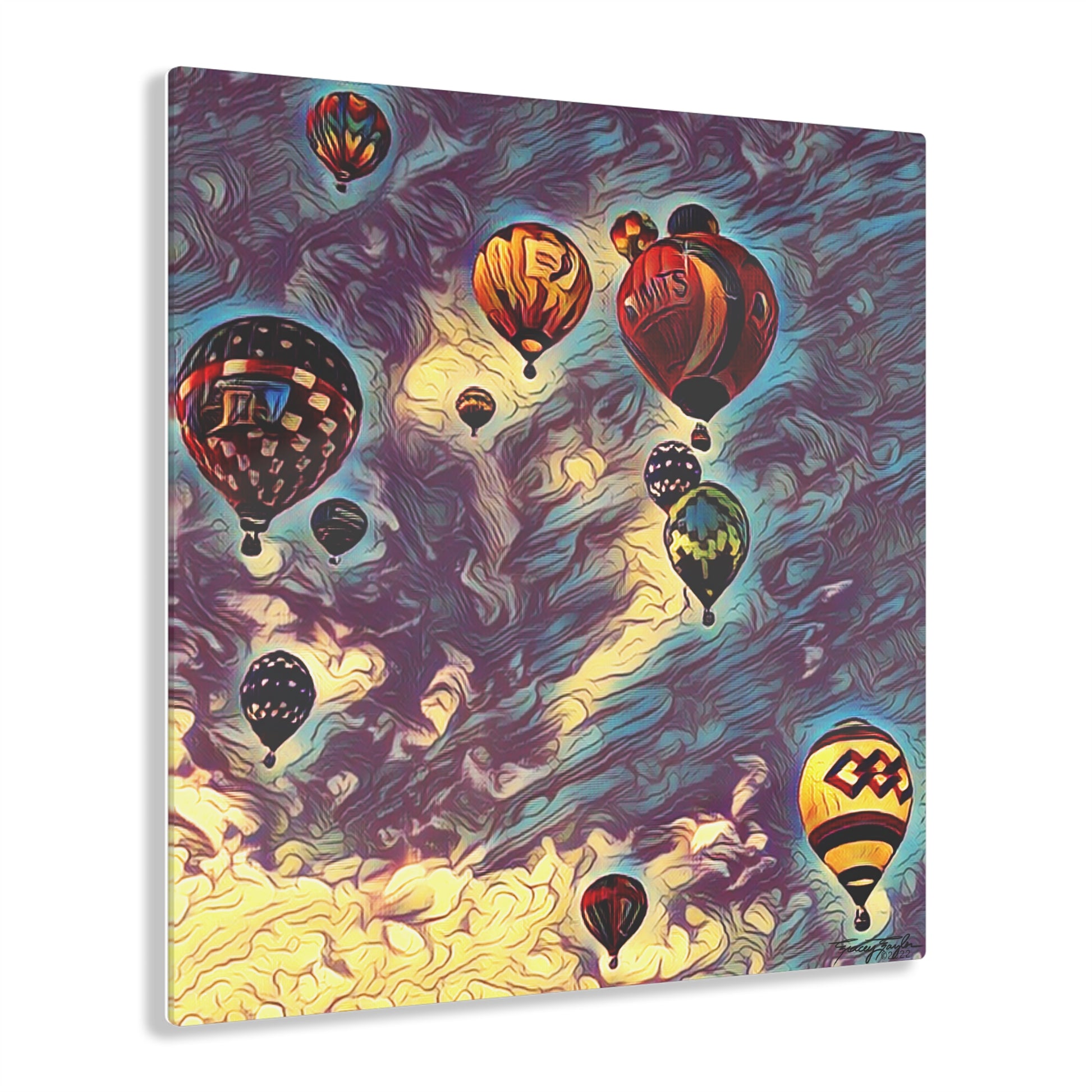 Made to seem like the art is printed on a glass surface, these acrylic photo prints never fail to dazzle. Images are second-surface printed directly on a 1/4" acrylic panel for a stunning result. Each acrylic print comes ready to hang and floats 1.5" off the wall. The image, a Tracey Taylor original, combines a digital photo, digital paint mediums, and post production magic. Tracey Taylor Fine Art "Dark Sky More Than 1" © 2022.