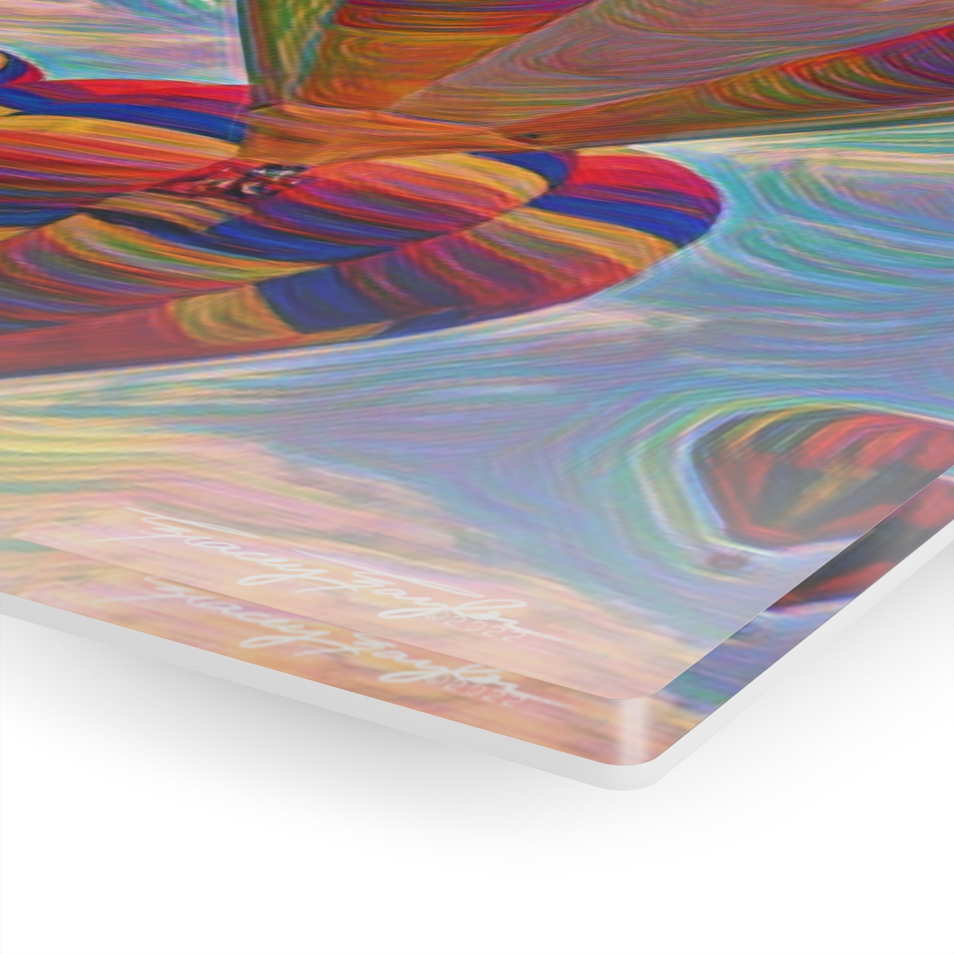 Made to seem like the art is printed on a glass surface, these acrylic photo prints never fail to dazzle. Images are second-surface printed directly on a 1/4" acrylic panel for a stunning result. Each acrylic print comes ready to hang and floats 1.5" off the wall. The image, a Tracey Taylor original, combines an original digital photo, digital paint mediums, and post production magic.  Tracey Taylor Fine Art  "Pop" © 2022.